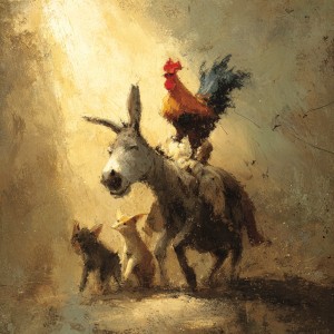 Η ιστορία αφηγείται την τραγική περιπέτεια της μικρής κότας, η οποία από απληστία τρώει μόνη της ένα μεγάλο καρύδι και πνίγεται. Ο μικρός κόκορας προσπαθεί να τη σώσει, περνώντας από μια αλυσίδα δοκιμασιών για να φέρει νερό, αλλά φτάνει αργά. Ακολουθεί μια θλιβερή πομπή για ...